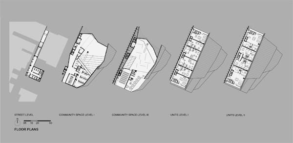 Otros aspectos importantes del proyecto fueron la singularidad que presenta a media altura, creando un vestíbulo comunal. También las características de su fachada para mantener unas buenas condiciones frente a la radiación solar y ventilación. Aquí una doble piel hacia el sur sirve para proteger del sol, mientras que en la del norte se organizan determinados huecos para favorecer la ventilación cruzada.