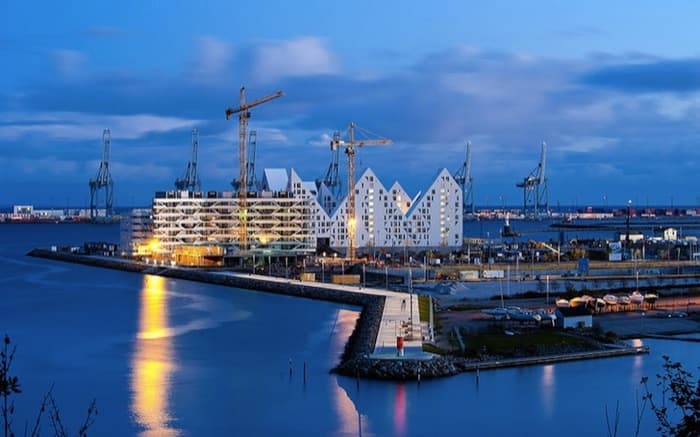 Este proyecto de bloques con 200 apartamentos no podía tener mejor nombre: ICEBERG. Se ha construido en el puerto de Aarhus, que es la segunda ciudad más grande Dinamarca y una de las más antiguas. Tiene un puerto que exporta productos agrícolas e importa hierro y carbón.