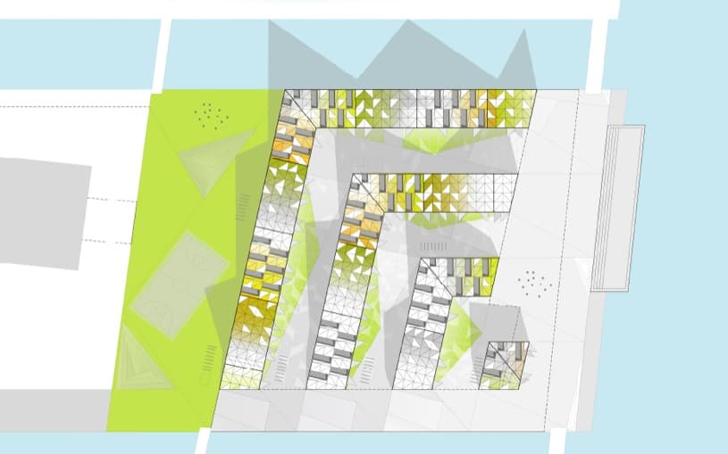 El proyecto surgió de un concurso internacional desarrollado en el 2008. Esta promoción también tiene espacio reservado para equipamiento social, locales para oficinas, y un tercio de viviendas para alquileres baratos.