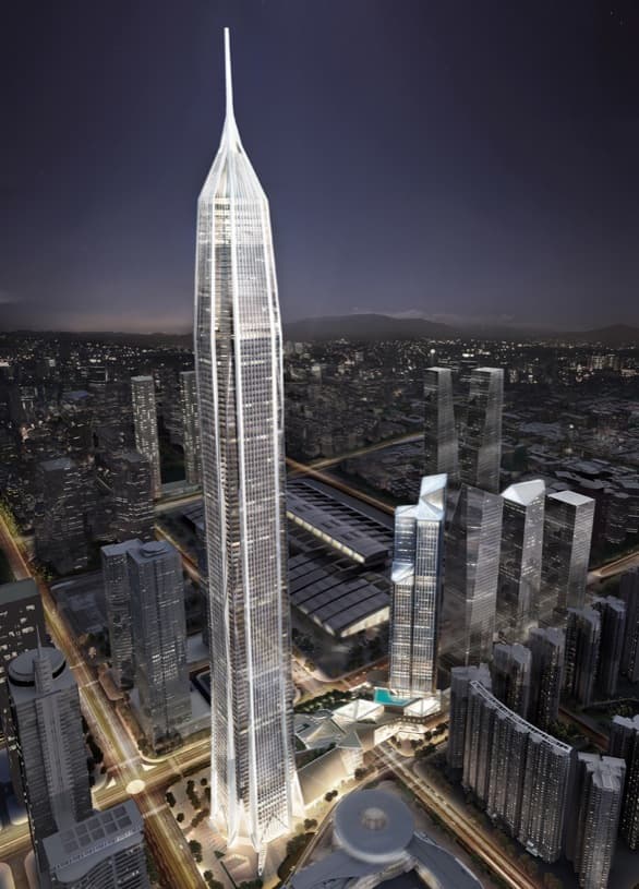 La Torre PING se construyó en el nuevo distrito de negocios de la ciudad china de Shenzhen, también conocido como Centro Financiero Ping. El rascacielos tiene un gran podio en la base, destinado a zona comercial y de congresos. Arriba hay 100 plantas de oficinas, hasta completar una altura de 660 metros. Esto lo convierte cuando esté terminado en el edificio más alto de China, y la tercera torre del mundo.
