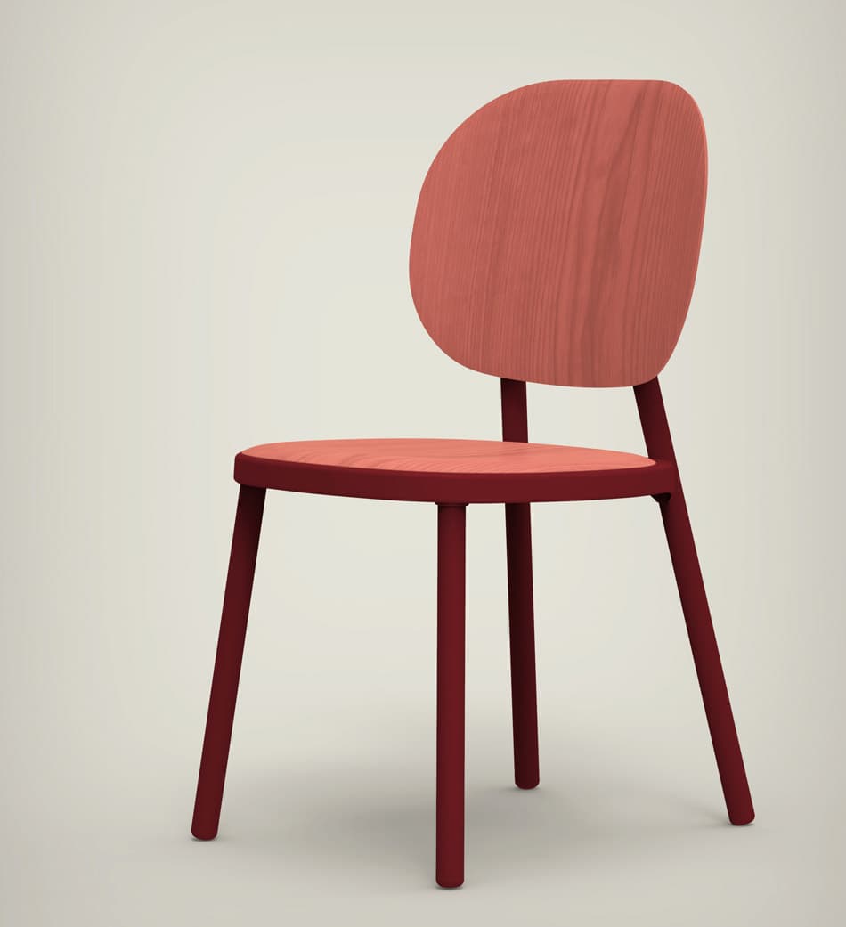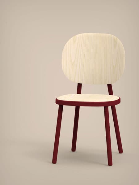 Con el nombre de KITT hemos conocido esta impresionante silla, de fuerte carácter industrial y personalidad redondeada. Tiene un respaldo que es tan amplio como el asiento, hechos ambos con una preciosa chapa de fresno teñida.  Las patas también son de madera, aunque van pintadas del mismo color que el marco del asiento y la pieza que recoge el respaldo, que están fabricados en poliamida resistente. Hay algunas combinaciones de colores que son bastante atractivas, haciendo uso de un mayor o menor contraste.