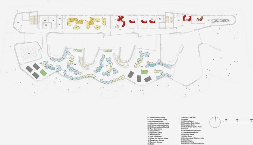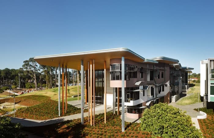 Haciendo uso de un conjunto de pantallas de hormigón armado, se construyó este edificio para la Escuela de Arquitectura Abedian. Está en el campus Gold Coast de la Universidad de Bond (Queensland, Australia). Se utiliza para laboratorios, oficinas, talleres, y salas de recursos, dispuestos a ambos lados de un espacio central, que da la sensación de ser una gran cueva.