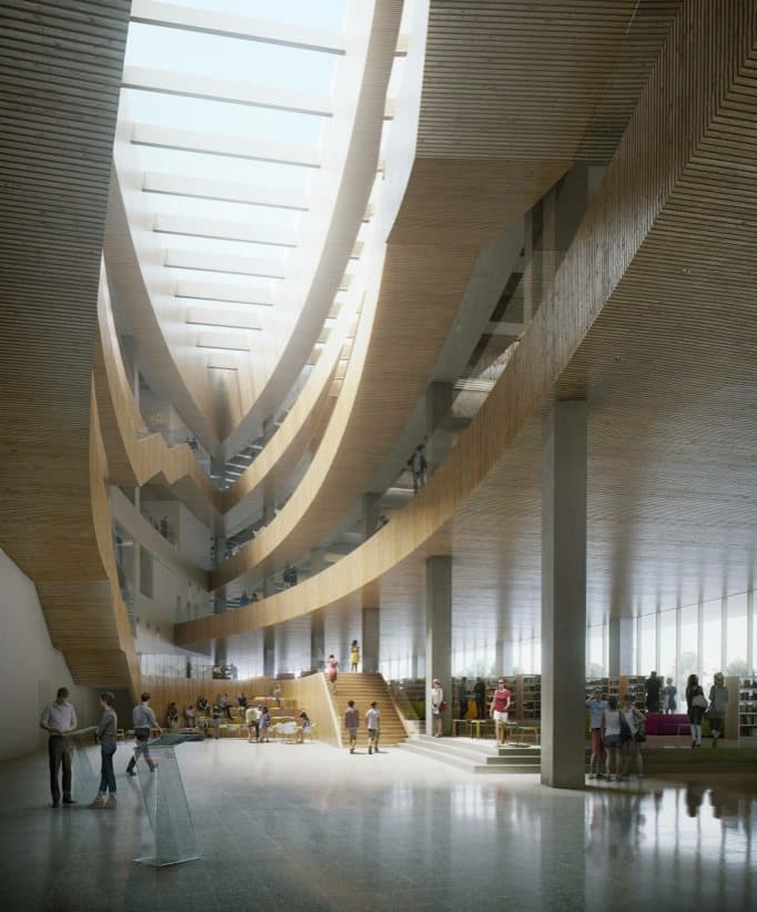 La Nueva Biblioteca Central de Calgary es un edificio público tecnológicamente avanzado para la innovación y la investigación. Potencia la conexión del centro de la ciudad con el East Village. Su diseño está inpirado en la cultura urbana, y cuenta con una entrada amplia enmarcada por unos arcos revestidos de madera. Este detalle hace alusión a los vientos chinoook que recorren las laderas orientales de las Montañas Rocosas canadienses.