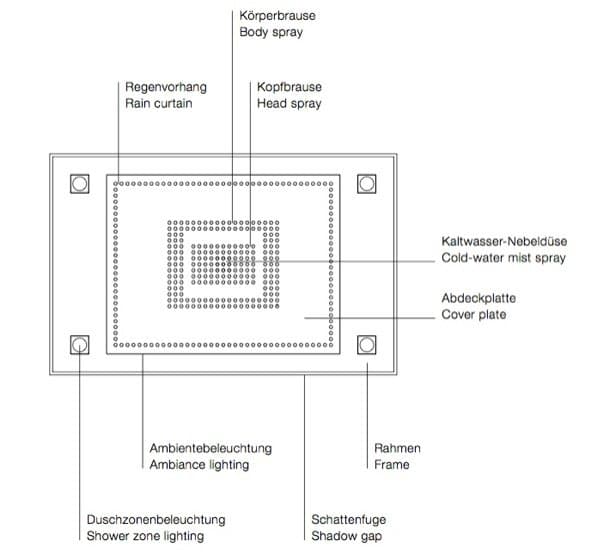 Su panel es bastante grande y plano, tiene numerosas salidas de agua concentradas en áreas independientes (central, corona, y periferia) para favorecer la ducha por diferentes partes del cuerpo. Incluye un atomizador de niebla de agua fría, funciones de luz, y de esencias aromáticas. El control se realiza a través de las herramientas Smart Tools. Están basadas en la tecnología digital Smart Water que Dornbracht utiliza tanto en el cuarto de baño como en la cocina.