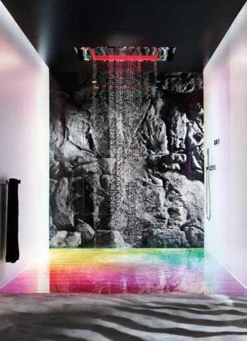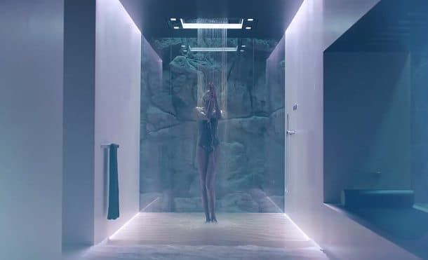La ducha Sensory Sky tiene un diseño minimalista, pero en realidad se trata de un producto que reúne elementos tecnológicos muy avanzados. Se pusieron ahí para que la experiencia de ducharse fuera única, abarcando todos los sentidos. Gracias a diferentes escenarios programados es posible disfrutar de varios tipos de lluvia, vernos envueltos en una niebla, dentro de un arcoíris, y oler aromas de la naturaleza.