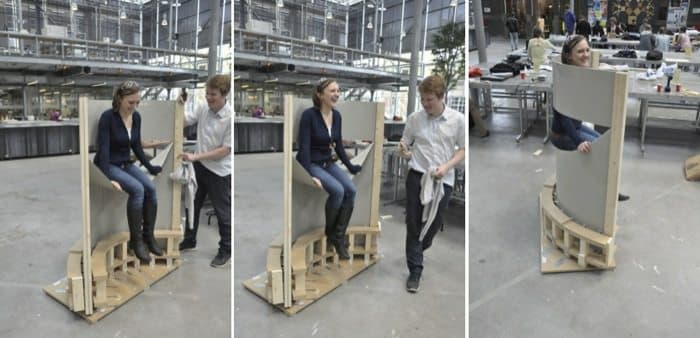 En el apartamento Pop Up, apretando un botón ofrece múltiples transformaciones. Fue desarrollado por un equipo de diseñadores y estudiantes holandeses. Investigaban la forma de hacer un aprovechamiento máximo del espacio en pequeños apartamentos. Hay que aclarar que el concepto parte de un hecho bastante simple: una persona que vive en un estudio no puede ocupar dos espacios a la vez; si se está cocinando, es porque no se está durmiendo; si se descansa en el sofá es porque ya no se está comiendo, etc. Por lo tanto, este usuario no necesita tener varias habitaciones.