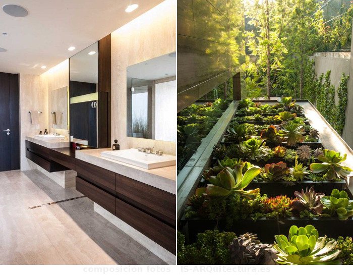 El proyecto de la Casa ML nos resulta muy atractivo por el empleo que se ha realizado de los materiales. Predominan el acero, vidrio, piedra y hormigón visto. Funcionan muy bien los jardines de grava y la vegetación, con numerosas jardineras colocadas en algunos de los voladizos. Dentro se exhibe una buena variedad de espacios, aunque nos hemos quedado con ganas de más fotos. Un ejemplo de ello es la parte alta de la casa, y el patio central. La decoración está bastante cuidada en esta vivienda, es ligera de elementos, y rica en los materiales elegidos. La combinación realizada dio como resultado unos ambientes confortables y relajados, equipados con un mobiliario que está a la altura.