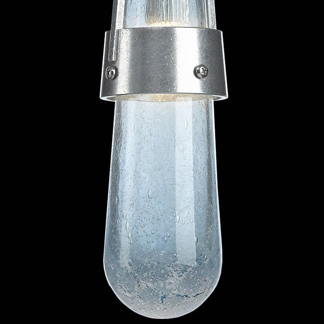 Link Mini es una colección de lámparas colgantes que están hechas de forma artesanal. Poseen una pantalla de vidrio soplado a mano que complementa un diseño industrial metálico de aluminio. Su aspecto es el de una gema preciosa, formando un conjunto decorativo que aporta brillo y color a los espacios. Estas lámparas artesanales de vidrio pueden ser de diferentes colores y texturas: burbuja azul, burbuja clara, cristal claro, claro con líneas de vidrio enroscado, y dorado.