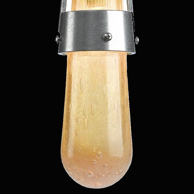 Cada una de estas lámparas artesanales de vidrio se completa con un dosel de techo redondo. El cable es lo suficientemente largo para que se pueda ajustar su altura (entre 47 y 196cm). Tiene unas dimensiones de 40cm (altura) y un diámetro de 7,4cm. Viene con una bombilla de 50 vatios tipo T4 GY6.35 de base halógena.