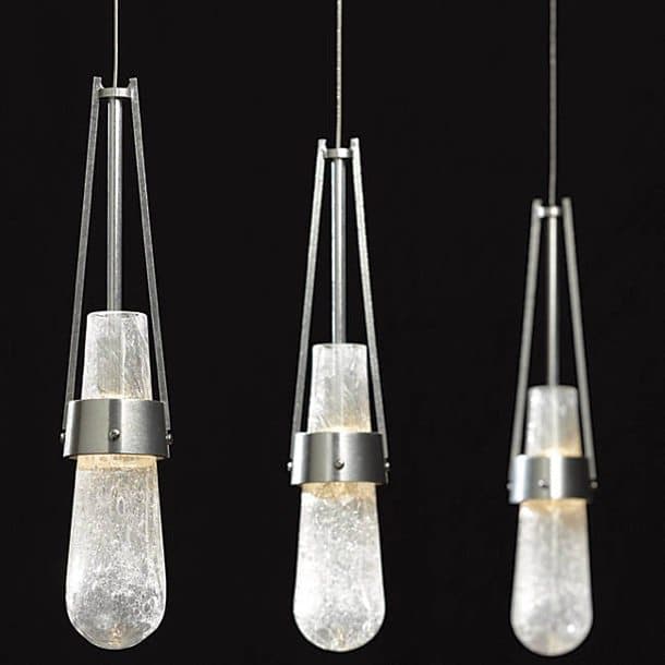 Estas lámparas colgantes nacieron de la colaboración entre dos compañías de artesanos de Vermont: Hubbardton Forge y Arentzen & Ohlander Glass.