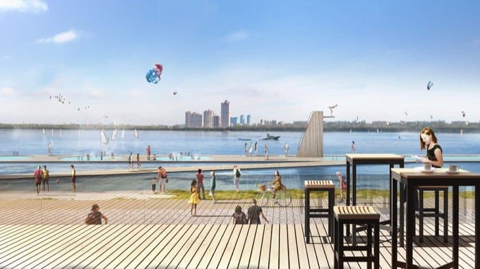 La ribera norte tienen islas verdes, pensadas para purificar el agua, así como playas naturales en el centro de la ciudad. También se tiene prevista la construcción de un edificio moderno en el área de Mnevniki, que se verá como un hito que marque la puerta de entrada a una ruta de 10 parques y jardines, todos ellos diferentes.