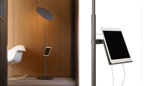 En los modelos de mesa, suelo, y pared, la lámpara Circa es compatible con la mayoría de dispositivos móviles, para ofrecer un punto de recarga a través de su puerto USB. Nótese que existe la posibilidad de elegir el modelo de pie con soporte para el tablet.