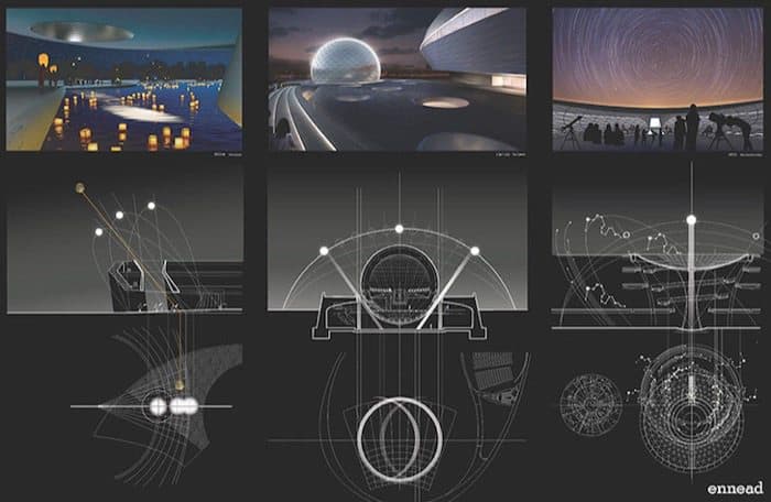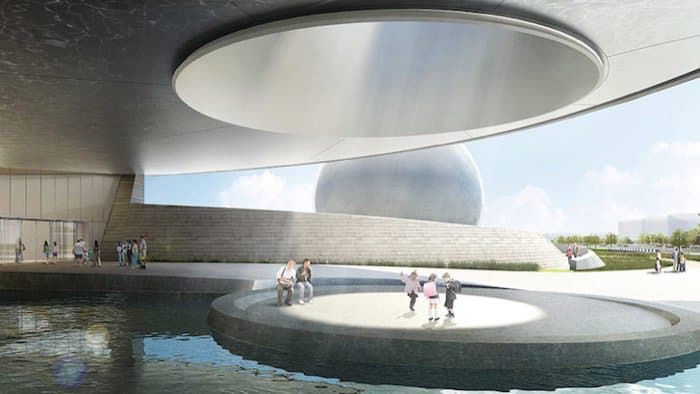 El diseño es moderno, dinámico, y tiene visión de futuro. Destacan en él tres elementos: el óculo, la cúpula invertida, y la esfera. Su extenso programa se distribuye en una superficie de 38.000m2, en la ciudad satélite de Lingang, situada al sureste del distrito de negocios de Shanghái. El complejo dispone de jardines, salas de exposición permanente, y un teatro planetario (esfera de 18 metros de diámetro). También hay galerías temporales, una sala digital de 21 metros de diámetro, y hasta un IMAX. No podía faltar un centro de educación e investigación, un telescopio solar, y hasta un campamento para observaciones. La construcción de todo esto costará unos 85,8 millones de euros.
