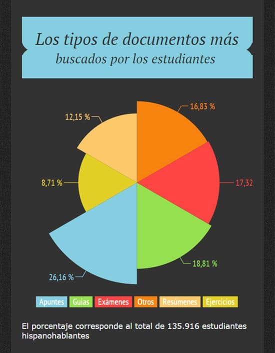 En Docsity.com* realizaron una infografía de las visitas de estudiantes hispanohablantes que llegaban a ese sitio buscando información (sección de «Documentos»). Resultó bastante revelador que por detrás de los estudiantes de Derecho y Literatura fueran los de Arquitectura los más activos buscando documentos para sus estudios. La mayoría de esas búsquedas están relacionadas con los apuntes de clase, guías, y los exámenes; y provienen de España, México, Colombia, y Perú principalmente. Nos llama la atención que los Estados Unidos aparezcan en el décimo puesto, un hecho que puede deberse a que esa herramienta no sea muy popular allí, porque de todas las visitas que llegan a IS-ARQuitectura, ese país está en quinto lugar. Algo parecido ocurre con Argentina.