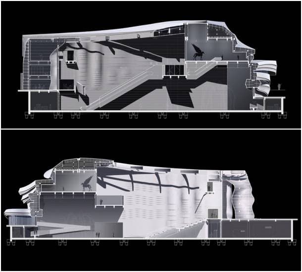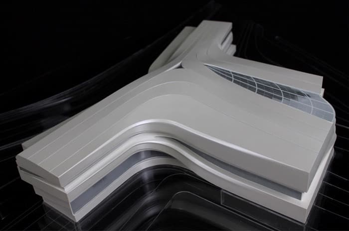 El diseño culminó en un edificio de compleja volumetría. Su fachada parece el resultado de las fuerzas geológicas que moldearon durante miles de años ese lugar. Hace que el edificios se perciba como «algo de allí». Para poder visualizar la estructura natural del terreno, y conseguir esa textura en la fachada, el equipo creativo empleó técnicas paramétricas.