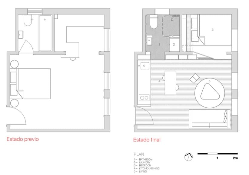 Las preferencias para muchos jóvenes de hoy siguen estando vinculadas a la ciudad. Es verdad que eso puede implicar tener que acostumbrarse a vivir en un apartamento pequeño. Una superficie de 27 metros cuadrados fue suficiente para que una pareja australiana decidiera aventurarse a su remodelación. Se trataba de un estudio localizado en un antiguo edificio de Darlinghurst, un barrio situado al este de Sídney. Para ello colaboraron estrechamente con un arquitecto, pidiéndoles que encajara allí una vivienda que tuviera mucho espacio para las funciones diarias, armarios para almacenamiento, además de sitio para la lavadora.