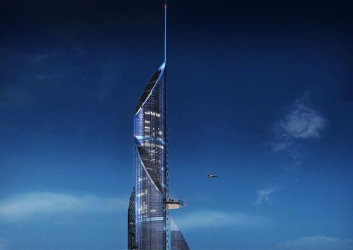 Hay que referirse a este rascacielos como un conjunto de 4 torres que alcanza la sorprendente altura de 1.152 metros. Forma una megaestructura de aspecto mucho más robusto que Burj Khalifa (828m), o la Kingdom Tower (1.000m), y por lo tanto menos esbelto, aunque también menos bello.