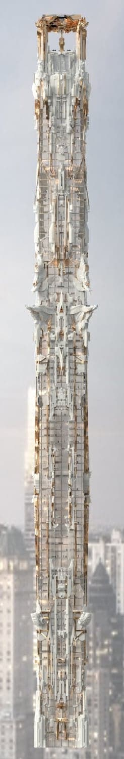 Este rascacielos gótico alcanza los 102 pisos de altura. Parte de su fachada acristalada estaría hecha de piedra tallada, y enriquecida con unos interesantes detalles realizados en bronce. Las impresionantes vistas hacia Central Park y la parte oeste de Nueva York estarían a disposición de los residentes, mediante grandes y suntuosos balcones.
