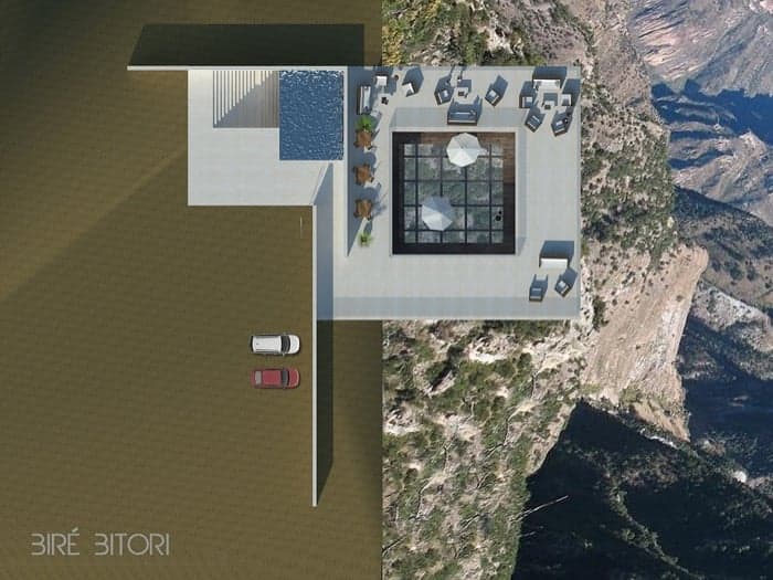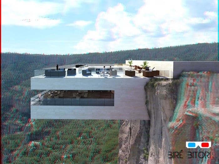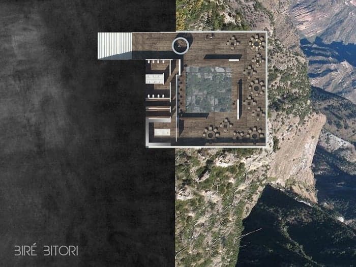 El diseño de este restaurante en voladizo está pensado para un acantilado de la Sierra Tarahumara (Chihuahua, México). Pero no es obligatorio llegar a él haciendo escalada, pues a pesar de su dramática posición, está muy bien localizado: cerca del hotel Posada Mirador y de la estación de ferrocarril del Chepe. Su nombre de Biré Bitori significa «El Plato» en la lengua indígena tarahumara.