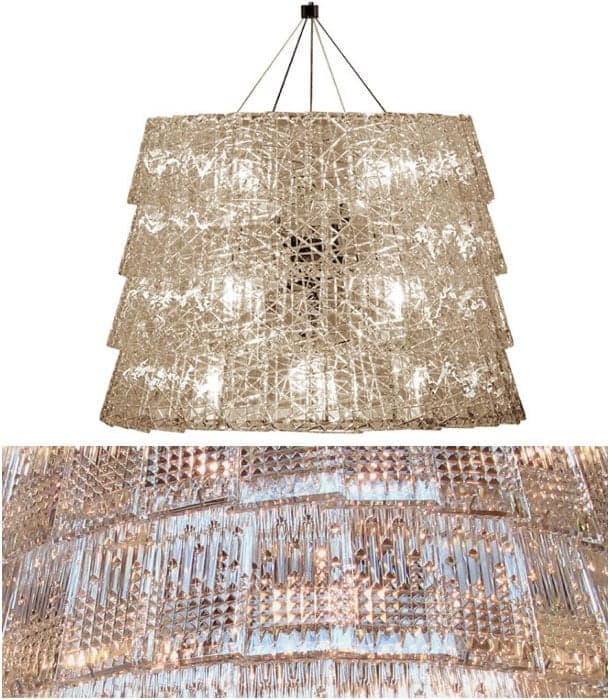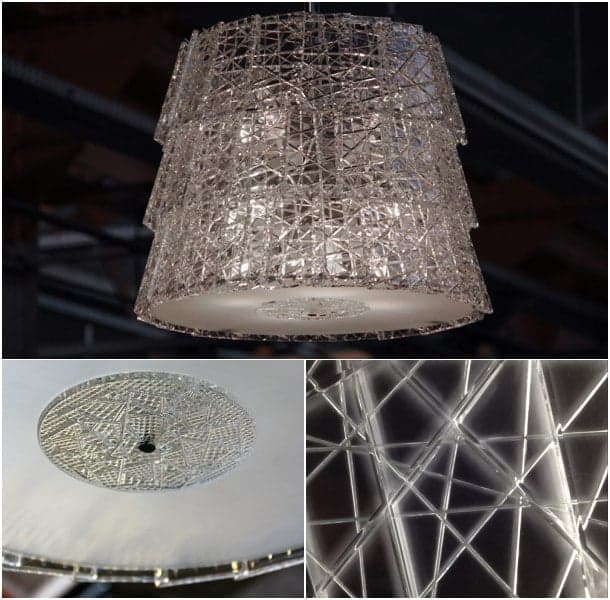 Existe una versión de Tuile que está hecha con cristales fabricados con cortes superpuestos, colocados de una manera aleatoria. La otra versión utiliza piezas de vidrio con grabados paralelos y una geometría regular. Pero esta lámpara colgante también admite un diseño personalizado, al gusto del cliente, adquiriendo un gran potencial a la hora de crear decoraciones que encajen en determinados espacios arquitectónicos. Como se puede apreciar, esta lámpara es toda una obra de arte contemporánea.
