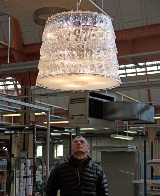 Esta lámpara de cristal se fabrica como una simbiosis entre tradición y modernas técnicas de producción. Con un lenguaje del pasado se ha compuesto un diseño moderno, bastante impactante por su acabado, y por su tamaño.
