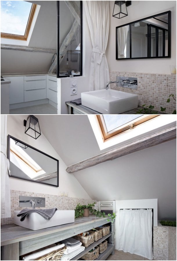 El proyecto de este apartamento bajo cubierta fue desarrollado por Prisca Pellerin. Es una joven arquitecta y diseñadores de interiores, que en los ratos libres también trabaja como periodista independiente. De esa manera comparte su pasión por la arquitectura y la decoración de espacios personalizados.