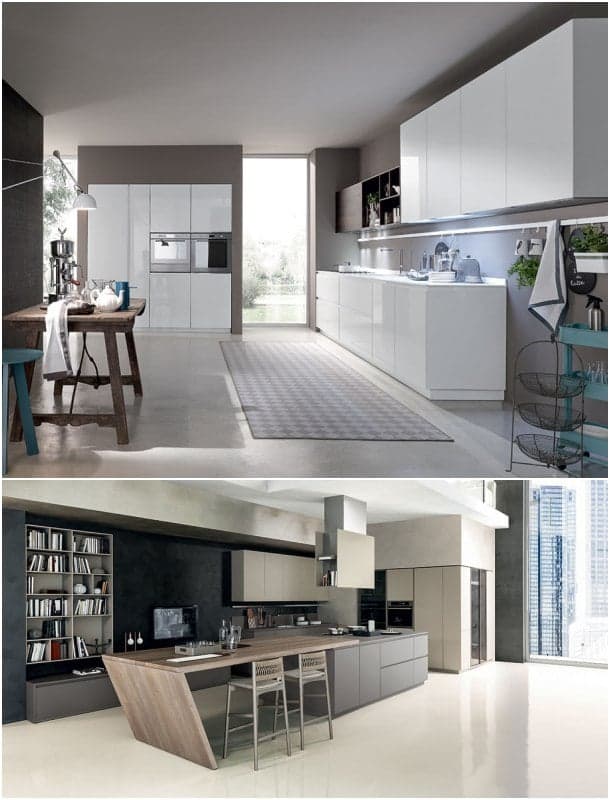 Una cocina moderna y minimalista se debe distinguir por su pureza de líneas, y ausencia de adornos. Los módulos de la colección Materika no tienen tiradores, pero esa necesidad está resuelta con un bisel, incluso cuando se trata de una cocina con puertas de acero inoxidable.