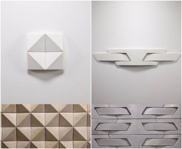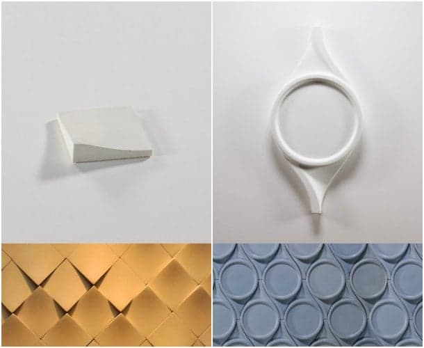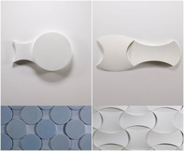 Aquí cada pieza tiene una forma y superficie determinada, para que al repetirse sobre una superficie cree un patrón 3D. El resultado es bastante impresionante, no hay más que fijarse en algunos de los ejemplos que hemos seleccionado. Las paredes revestidas con este material, se transformarán y tendrán otra expresión. Una gran ventaja de este azulejo es que, si queremos, ya puede aportar color. Esto se consigue con una pigmentación aplicada durante su fabricación. Hay un amplia gama de colores donde elegir, evitando de esta manera tener que pintar luego dicha superficie.