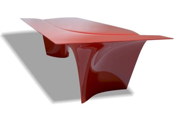 Fue presentada como una mesa de escritorio, pero Mew también podía servir como una mesa de comedor (con ciertas limitaciones). Su diseño es de lo más intrigante, pero está en consonancia con la arquitectura de Hadid. La superficie horizontal del tablero está atravesada por una hendidura curva. Esta singularidad es la que termina de definir sus patas escultóricas, todo ello sin simetría alguna.