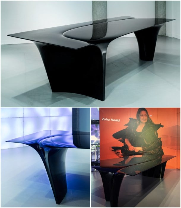 Esta mesa de escritorio fue diseñada por Zaha Hadid para Sawaya & Moroni. Es una marca que surgió en 1984, a partir del talento del arquitecto y diseñador William Sawaya, y el emprendedor Paolo Moroni. Ahora la compañía se ha consolidado como un fabricante de muebles de calidad. El hecho de que sus fundadores no precedieran del mundo del mueble, les dio una ventaja. Estaban libres de las típicas imposiciones conceptuales del gremio. Sus ediciones limitadas firmadas por grandes diseñadores y arquitectos, han acabado formando parte de colecciones privadas y museos de todo el mundo. Algunas imágenes de designboom.