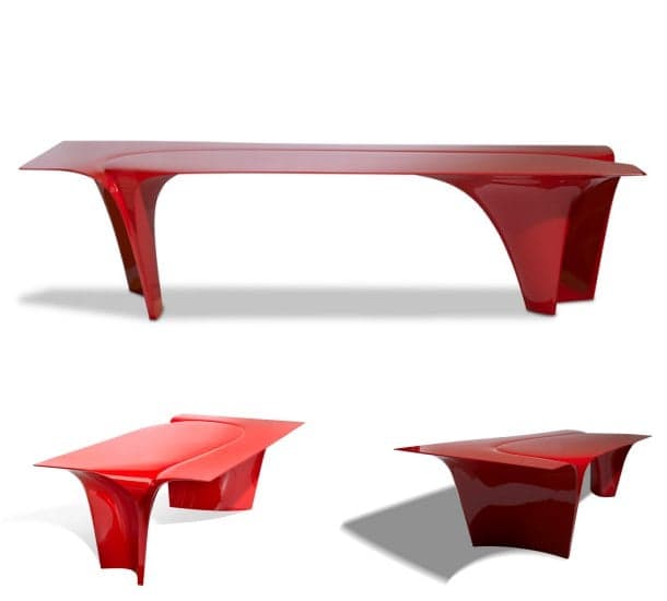 Este último mueble de Hadid está fabricado en poliuretano de alta densidad. Disponible en negro, blanco, y rojo.