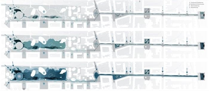 Este plan urbanístico abarca una superficie de 85.000m2. En él se contempla la recogida de las aguas pluviales, con un máximo de captación de 18.000m3. El exceso drenará por la calle Korsgade hasta el canal Peblinge, pero por el camino pasará por un filtro biológico de plantas acuáticas.