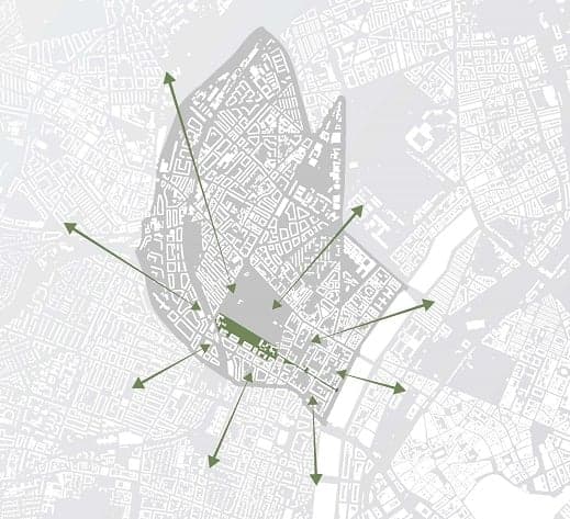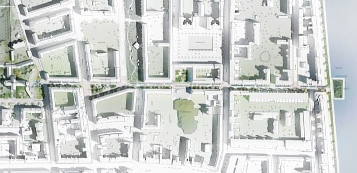 Nørrebro es un distrito de la capital de Dinamarca. Esa parte de Copenhague es muy cosmopolita y pintoresca, y como el resto de barrios que rodean el centro histórico, comienza en una dársena de agua. Estos estupendos renders y planos pertenecen a un proyecto de remodelación urbana para esa zona de la ciudad. Dicho trabajo logró el primer premio del Nordic Built Cities Challenge, organizado por el ayuntamiento de la ciudad.