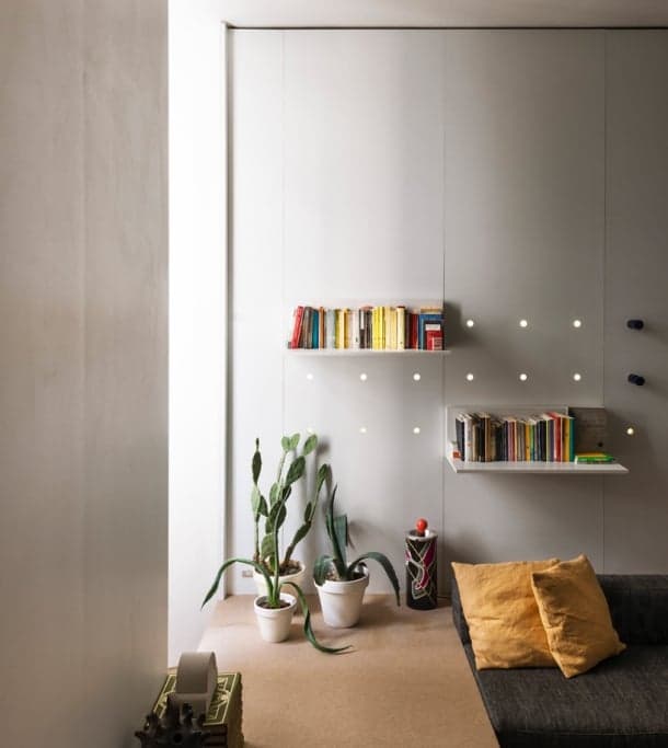 Esta decoración de apartamento le debía servir a su diseñadora como hogar y lugar de trabajo. Se realizó en el piso de un inmueble construido en los años 1970, en Florencia.