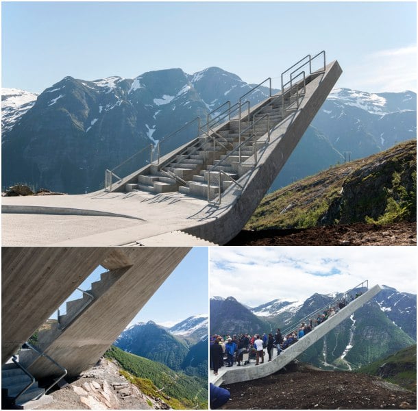 Estas fotos son de un mirador de hormigón en Utsikten, a 700 metros por encima del nivel del mar. Es un sitio que significa «vista», y que está en Gaularfjellet, una zona montañosa del oeste de Noruega.