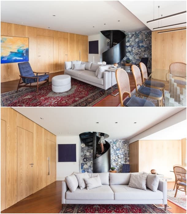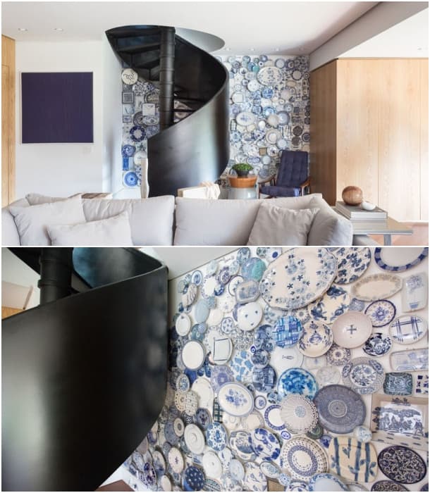 Los dueños de un apartamento de Porto Alegre (Brasil) necesitaban ciertas reformas. Querían mejorar la funcionalidad y diseño de varios espacios domésticos, así que contactaron con unos diseñadores. Aquí fue determinante que esta familia tuviera una colección de 300 platos de cerámica, en varias tonalidades de azul.