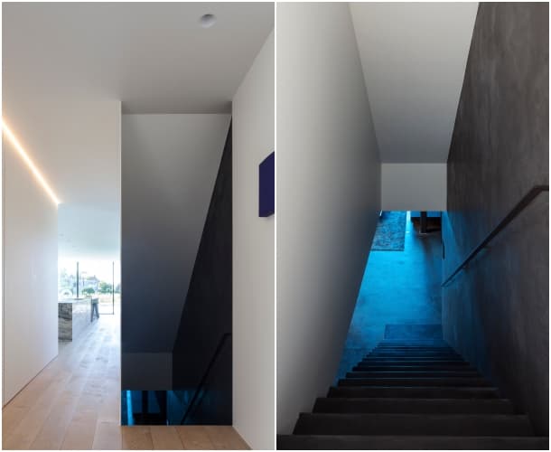 Sus interiores responden al estilo que se transmite hacia el exterior. Esta moderna vivienda es también el paraíso de la línea recta, porque solo las filigranas curvas fueron permitidas en un par de detalles de su decoración: lámpara de comedor y obras de arte. Punto.