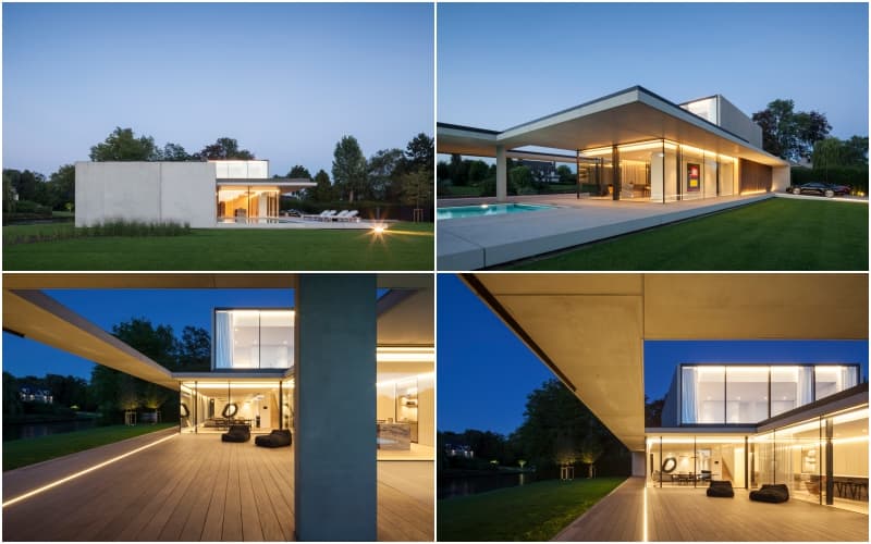 El río Lys nace en Francia y llega hasta Bélgica. Por él navegan embarcaciones de recreo que parten de multitud de casas que hay en sus márgenes. Esta vivienda es una de ellas, pero tiene un estilo muy diferente al resto. Se construyó junto al río, a su paso por la localidad belga de Sint-Martens-Latem (cerca de Gante). La parcela adquiere forma de L, y posee una pequeña laguna.