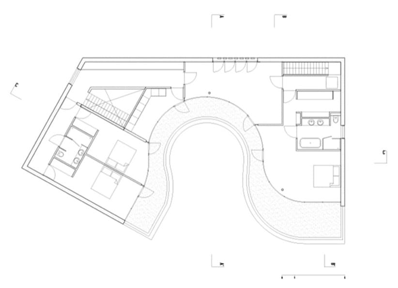 En total esta vivienda unifamiliar tiene 480m2, y está construida en la esquina de un sitio donde antes había un antiguo hospital.
