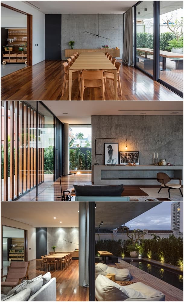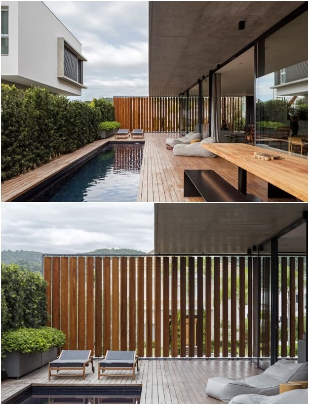 El proyecto de esta casa de hormigón y madera fue realizado por el estudio Jobim Carlevaro Arquitetos.