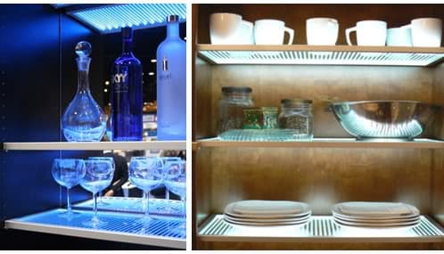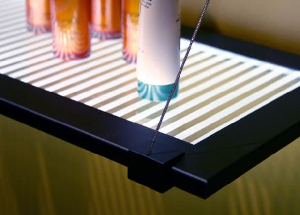 Las estanterías con este tipo de paneles pueden ser muy efectistas, tanto para viviendas (cocinas, por ejemplo), como para los expositores comerciales, cafeterías, bares… Hay varios diseños de grabado, pero se puede cambiar por uno propio personalizado, e incorporar así un logotipo.