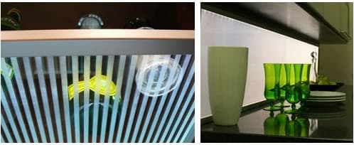 Eluma es una innovadora solución de iluminación que puede tener muchas aplicaciones. Es un marco de aluminio iluminado con LED, para paneles de vidrio templado grabado. Esta combinación tiene la ventaja de llevar incorporado un sistema de iluminación eficiente a base de ledes, alimentados con muy baja tensión (12v).