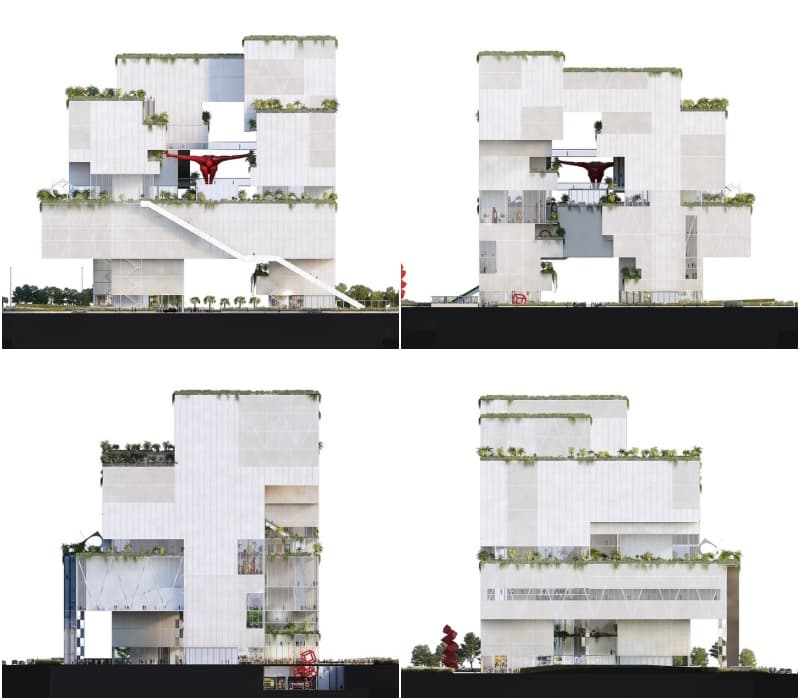 Esta idea lleva el nombre de «lienzo viviente”, y pretende conectar el nuevo museo con la ciudad, utilizando un volumen fragmentado, con patios verticales. Esto invita al visitante a ser más partícipe en el ‘diálogo’ con las obras de arte expuestas.