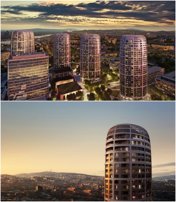 Como se puede ver en los renders, tres de las torres tienen la misma apariencia. La cuarta es un poco más ancha, como si se hubieran fusionado dos de ellas.