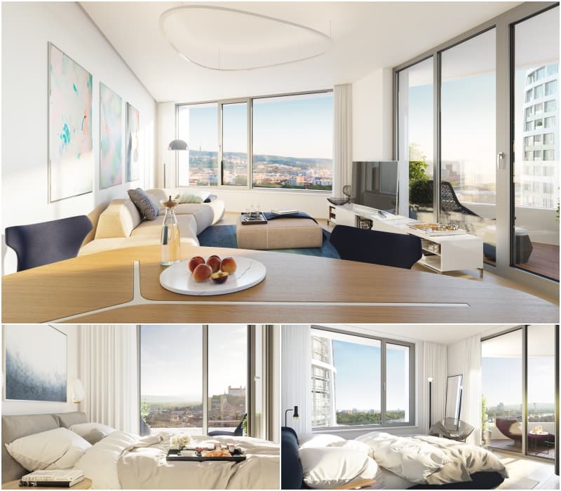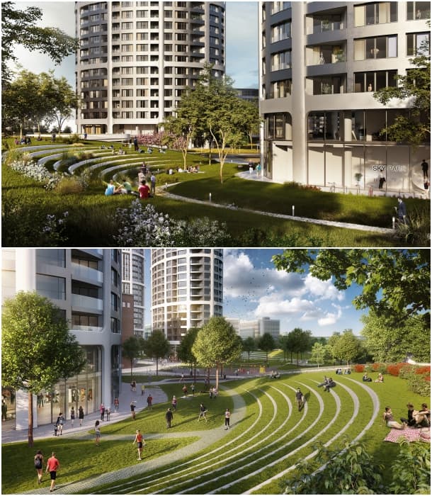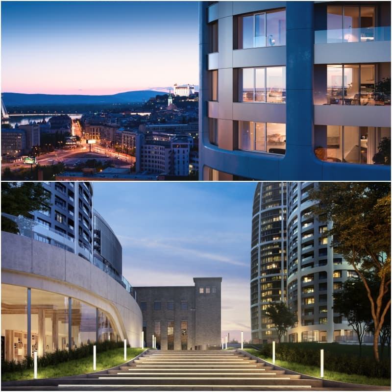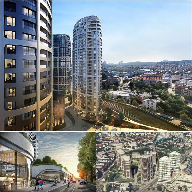 Estas imágenes renderizadas tienen que ver con otro de los proyectos de Zaha Hadid Architects (ZHA). Esta vez se trata de las torres Sky Park. Es una promoción de 700 viviendas, construidas en un área industrial abandonada de Bratislava (Eslovaquia).