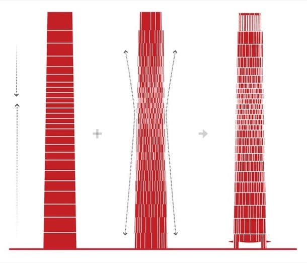 Este complejo se planificó para servir como un centro que combina funciones comerciales y públicas. El rascacielos fue diseñado con formas suaves, haciéndolo ligeramente más estrecho en su coronación. Sus esquinas están redondeadas, y presenta un leve estrangulamiento en su parte superior. Según sus diseñadores, esta forma ayuda a reducir en su estructura las tensiones provocadas por el viento. Su fachada es también un guiño a la cultura tecnológica de la región.