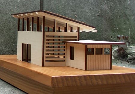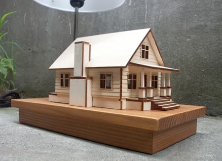 Cada uno de estos modelos está hecho a mano, empleando tecnología de corte CNC (control numérico por computadora). Las máquinas cortan los tableros de madera (de pocos milímetros de espesor) con rayo láser. Las piezas luego son pegadas meticulosamente, para formar una base, y la maqueta de la casa. La base está preparada para recibir la parte electrónica de la lámpara.
