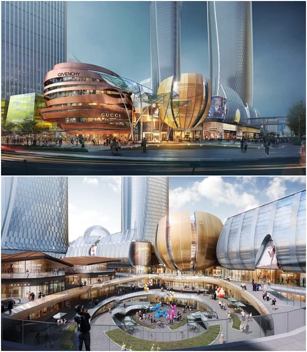 Suele ser habitual que el diseño arquitectónico en Asia se justifique haciendo referencia a determinados símbolos de la cultural local. Estas imágenes son de los rascacielos para el Hengqin Headquarters Complex. Simbolizan a dos dragones que persiguen una perla, aunque puede que para verlos haya que echarle antes un vistazo a los bocetos de la idea. Según la mitología china, la referencia a los dos dragones es un claro símbolo de la fortuna y la felicidad. Pero esas no fueron las únicas referencias utilizadas, hay más.