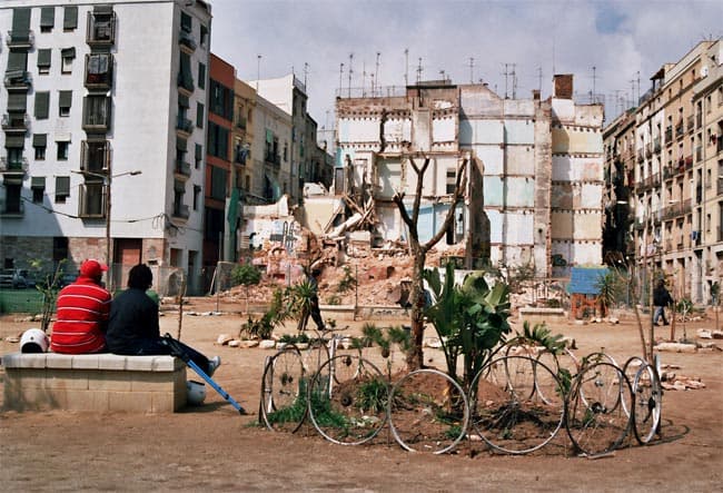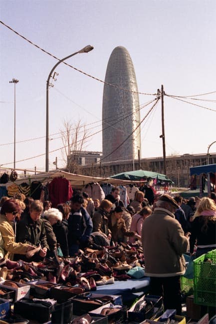 Las fotos son retratos urbanos que podían pertenecer a cualquier ciudad del mundo, salvo aquellas en las que se ve un contraste -bastante cruel- con la Torre Agbar (Jean Nouvel).