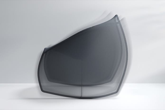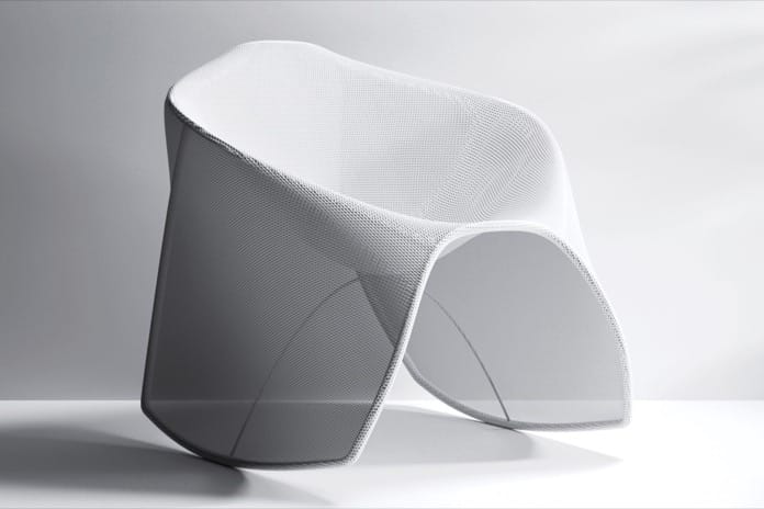 ZHE surgió a partir de la idea de la “nada”. Se fabrica con muy pocos elementos, pues es un marco de tubo metálico doblado, que sirve de soporte a una tela tensada. Esa malla va pegada al tubo de tal manera que termina dándole forma a la mecedora. La malla translúcida revela elegantemente la forma de los tubos curvados, al tiempo que define la forma del mueble. ZHE es un diseño ergonómico que proporciona confort durante mucho tiempo al usuario. De manera exquisita, la deformación de la malla es la que da forma al reposabrazos de esta silla.